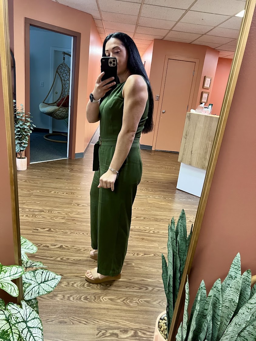 I enjoyed wearing tank tops and dresses. I lived in bodysuits and shorts. I remember at my heaviest weight all I wanted to do was get to a physique where I felt I could rock a bodysuit and jeans. (Remember: you can wear whatever clothes you want no matter your size, but what do you feel best in? I did not feel my best in something that tight.) Jeans and a bodysuit are essentially my causal go-to outfit now.